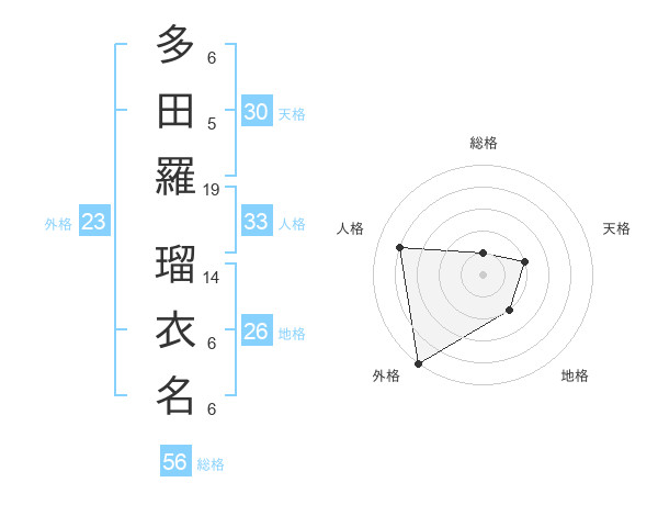 多田羅 瑠衣名さんを姓名の画数から五運を鑑定
