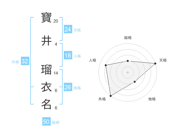 寶井 瑠衣名さんの外格は32画の5点
