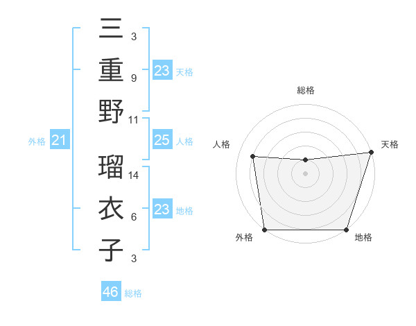三重野 瑠衣子さんを姓名の画数から五運を鑑定