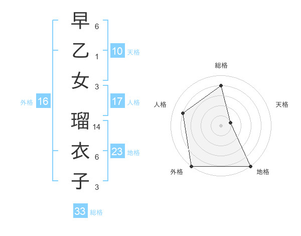 早乙女 瑠衣子さんを姓名の画数から五運を鑑定