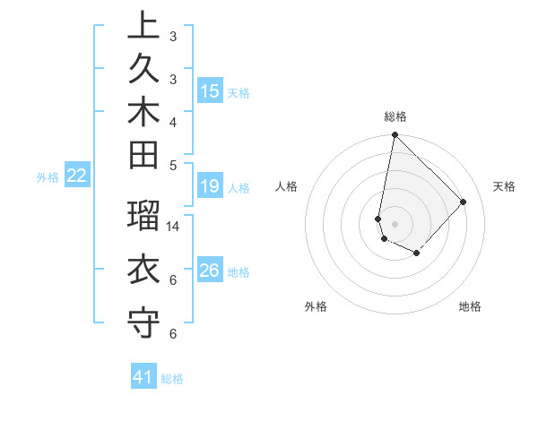 上久木田 瑠衣守さんを姓名の画数から五運を鑑定