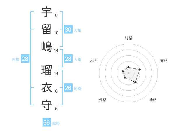宇留嶋 瑠衣守さんの総格は56画の1点