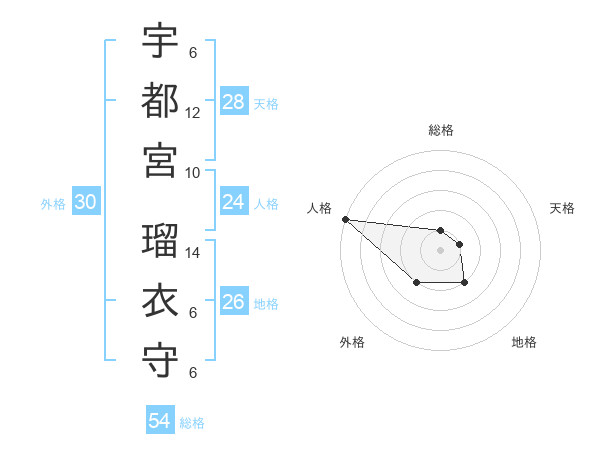 宇都宮 瑠衣守さんを姓名の画数から五運を鑑定