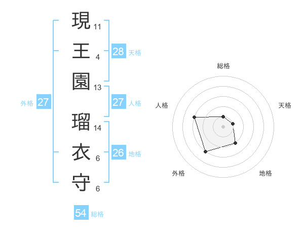 現王園 瑠衣守さんを姓名の画数から五運を鑑定
