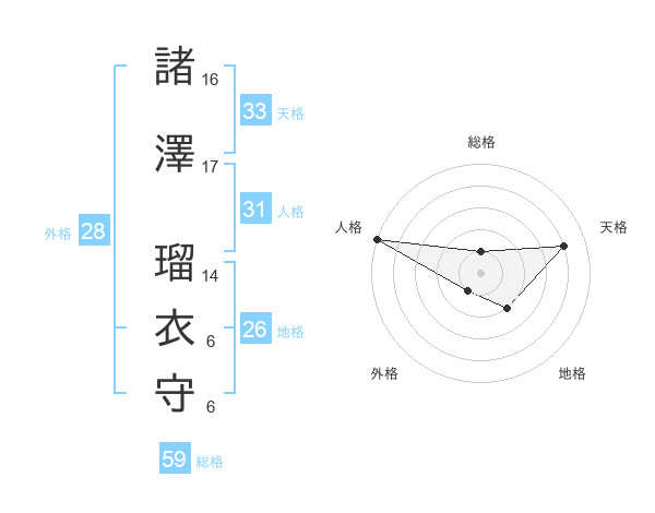 諸澤 瑠衣守さんの天格は33画の4点!