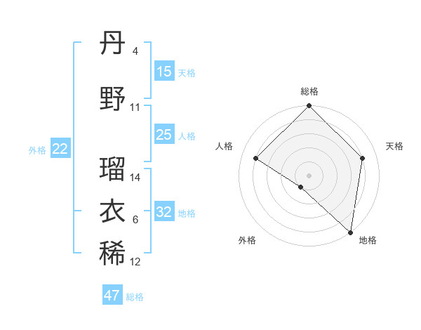 丹野 瑠衣稀さんを姓名の画数から五運を鑑定