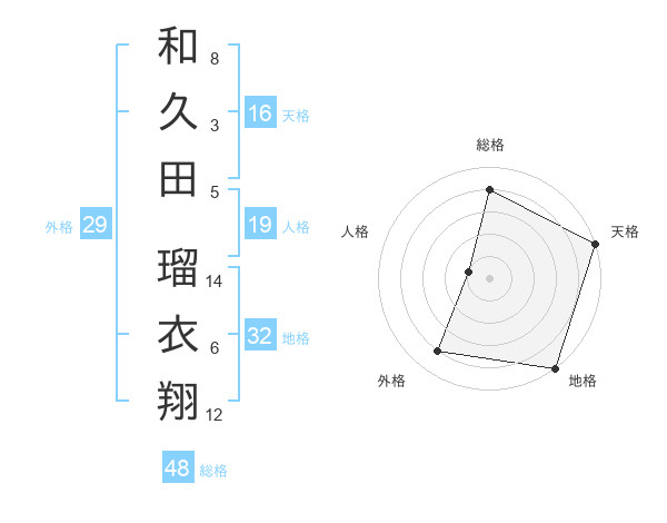 和久田 瑠衣翔さんの天格は16画の5点!