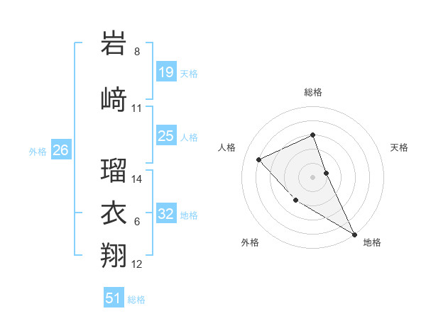 岩﨑 瑠衣翔さんの総格は51画の3点!