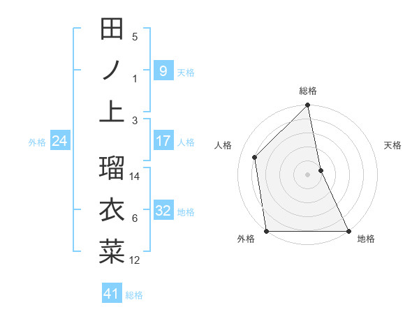 田ノ上 瑠衣菜さんの総格は41画の5点!