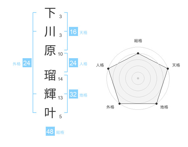 下川原 瑠輝叶さんの総格は48画の4点!
