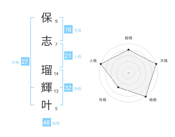 保志 瑠輝叶さんを姓名の画数から五運を鑑定