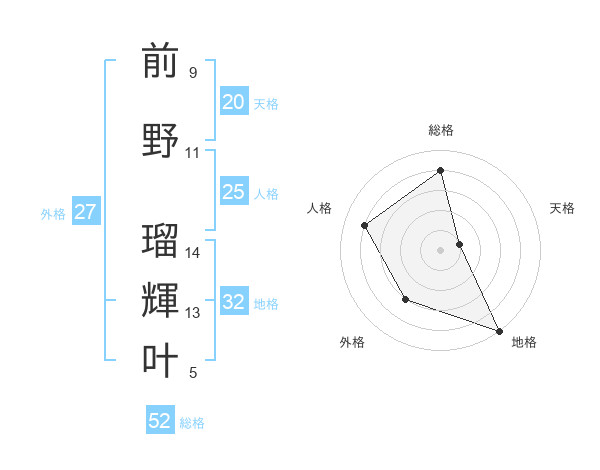 前野 瑠輝叶さんを姓名の画数から五運を鑑定