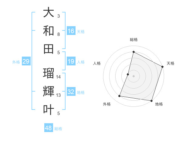 大和田 瑠輝叶さんを姓名の画数から五運を鑑定