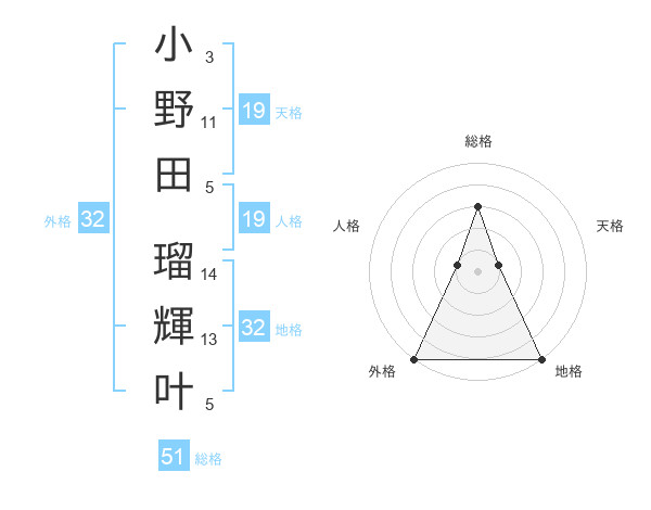 小野田 瑠輝叶さんを姓名の画数から五運を鑑定