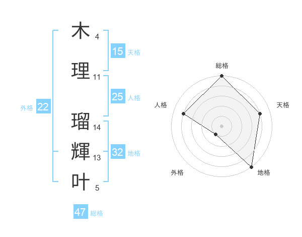 木理 瑠輝叶さんを姓名の画数から五運を鑑定