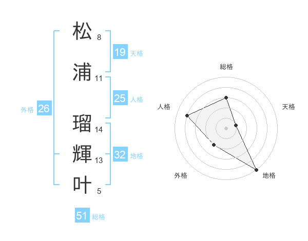 松浦 瑠輝叶さんを姓名の画数から五運を鑑定