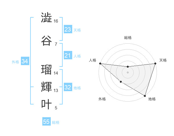 澁谷 瑠輝叶さんの人格は21画の5点!