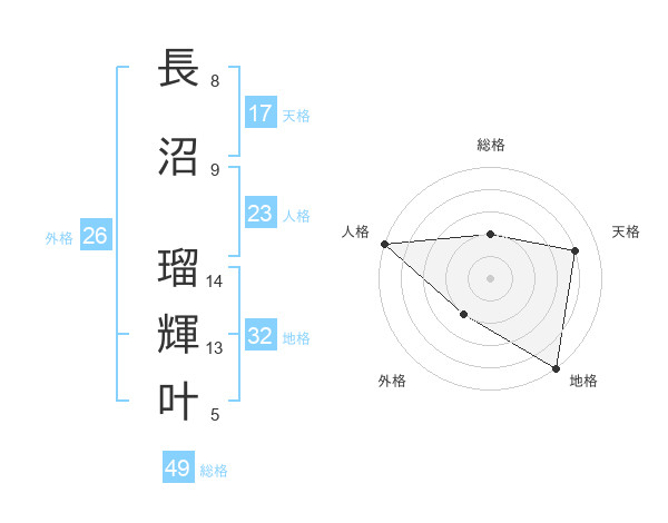 長沼 瑠輝叶さんを姓名の画数から五運を鑑定
