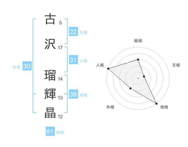 古沢 瑠輝晶さんを姓名の画数から五運を鑑定