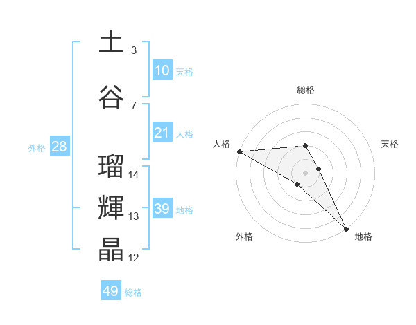 土谷 瑠輝晶さんを姓名の画数から五運を鑑定