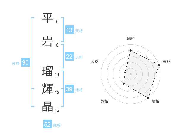 平岩 瑠輝晶さんの総格は52画の4点!