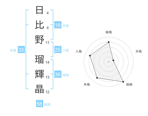 日比野 瑠輝晶さんを姓名の画数から五運を鑑定