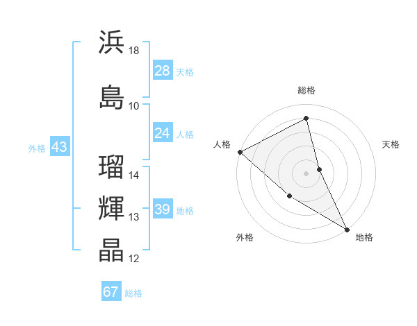 浜島 瑠輝晶さんを姓名の画数から五運を鑑定