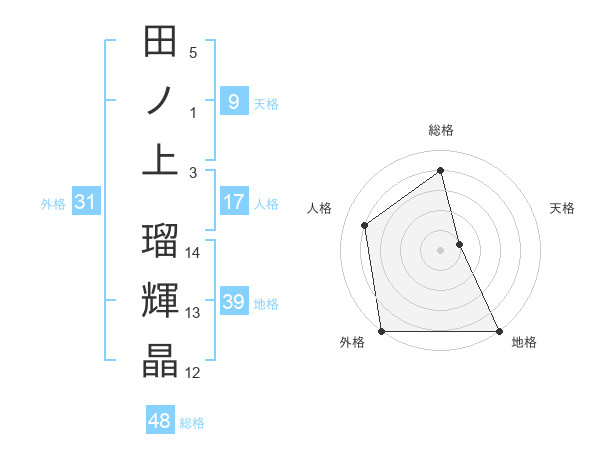 田ノ上 瑠輝晶さんの総格は48画の4点!