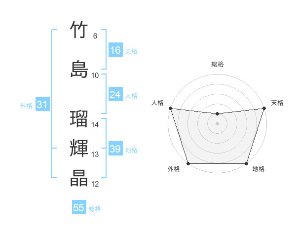 竹島 瑠輝晶さんの天格は16画の5点!