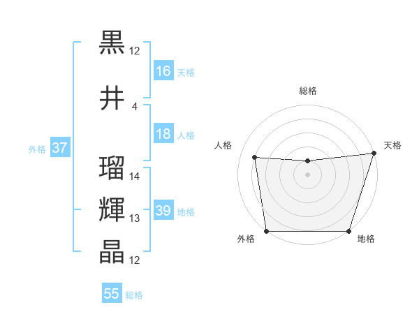 黒井 瑠輝晶さんを姓名の画数から五運を鑑定
