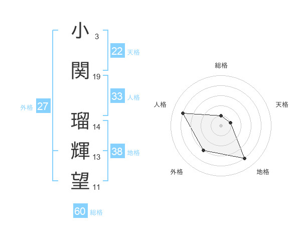 小関 瑠輝望さんを姓名の画数から五運を鑑定
