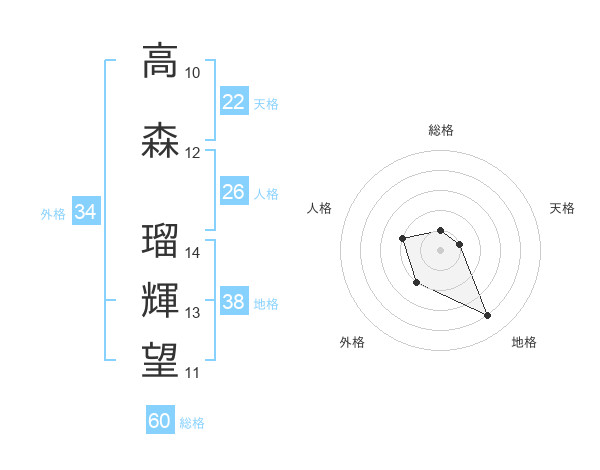 高森 瑠輝望さんの地格は38画の4点!