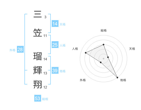 三笠 瑠輝翔さんを姓名の画数から五運を鑑定