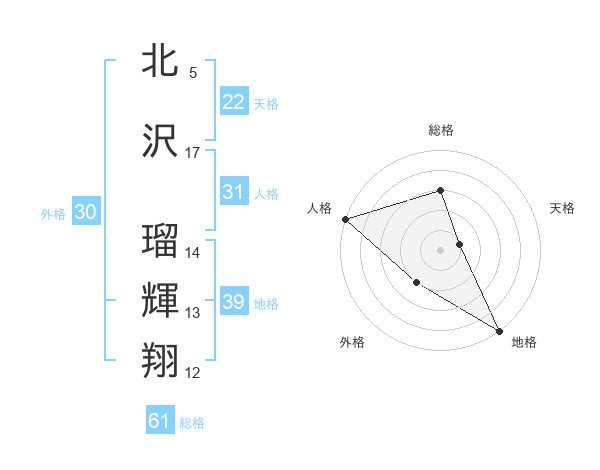 北沢 瑠輝翔さんを姓名の画数から五運を鑑定