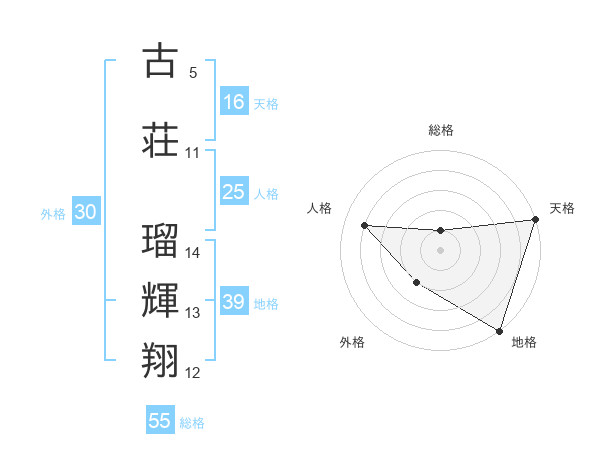 古荘 瑠輝翔さんを姓名の画数から五運を鑑定