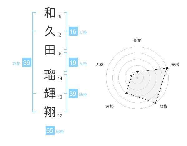 和久田 瑠輝翔さんを姓名の画数から五運を鑑定