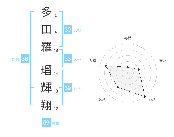 多田羅 瑠輝翔さんの地格は39画の5点!