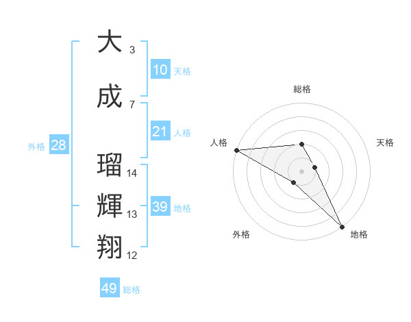 大成 瑠輝翔さんの総格は49画の2点!