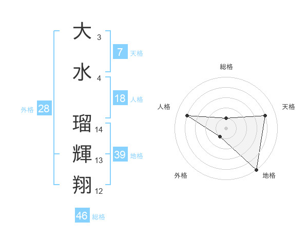大水 瑠輝翔さんを姓名の画数から五運を鑑定