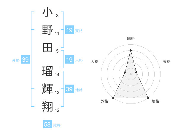 小野田 瑠輝翔さんを姓名の画数から五運を鑑定