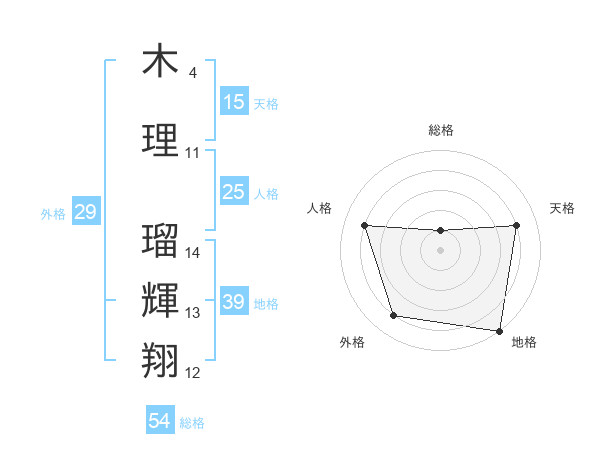 木理 瑠輝翔さんの総格は54画の1点!