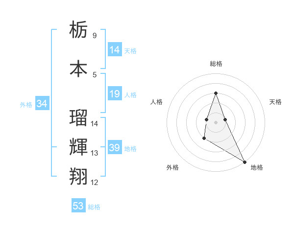 栃本 瑠輝翔さんの総格は53画の3点!