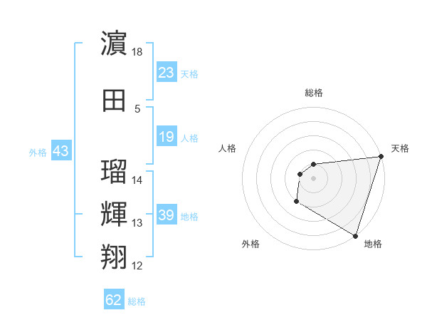 濵田 瑠輝翔さんの地格は39画の5点!