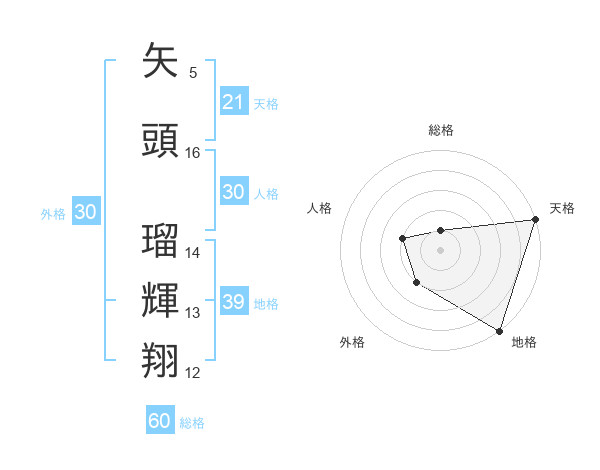 矢頭 瑠輝翔さんの天格は21画の5点!