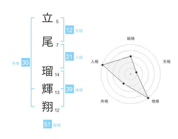 立尾 瑠輝翔さんの総格は51画の3点!