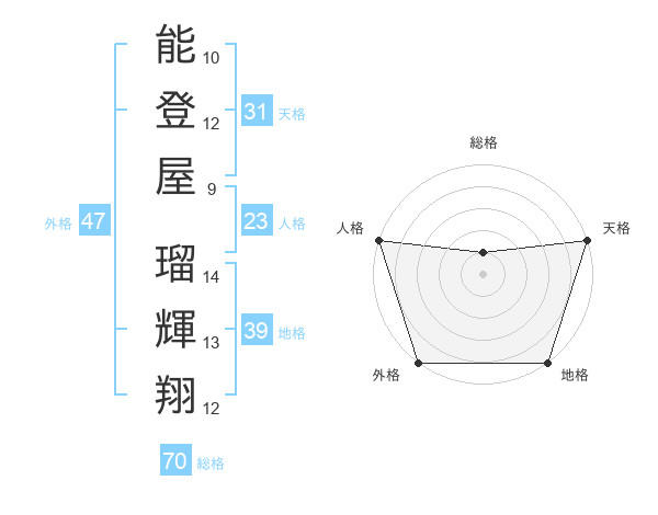 能登屋 瑠輝翔さんの外格は47画の5点!