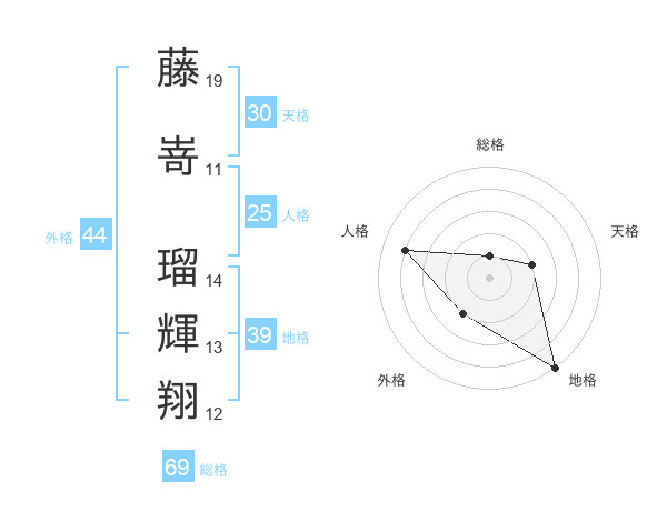 藤嵜 瑠輝翔さんの総格は69画の1点!