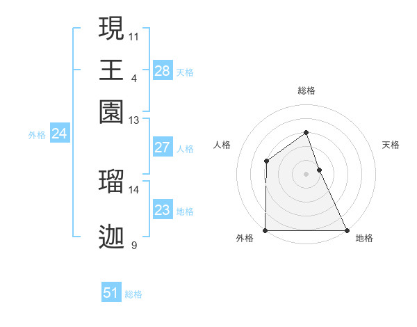 現王園 瑠迦さんを姓名の画数から五運を鑑定