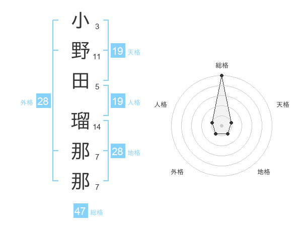 小野田 瑠那那さんを姓名の画数から五運を鑑定