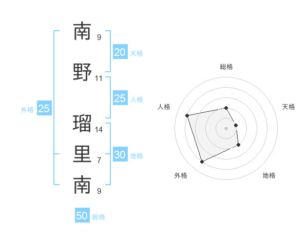 南野 瑠里南さんの総格は50画の2点!